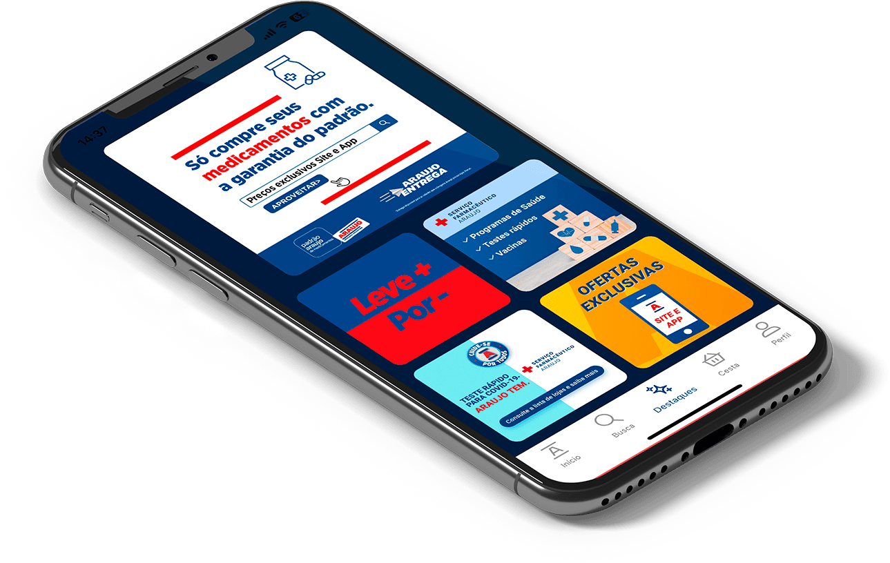 O novo aplicativo da Drogaria Araujo, desenvolvido em apenas 4 meses pelos nossos squads de tecnologia, transformou a experiência de compra dos clientes. Com foco em UX de ponta a ponta, o app otimizou a jornada do consumidor, oferecendo: